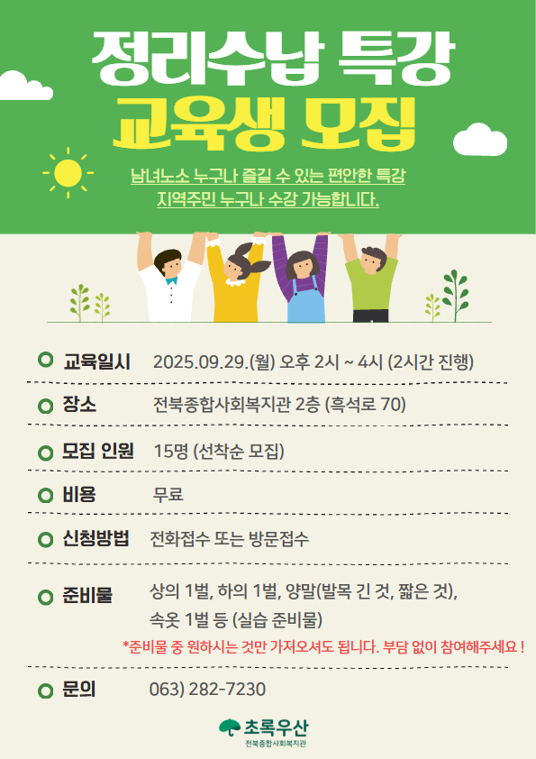 전북종합사회복지관에서 '정리수납 교육'을 진행합니다!