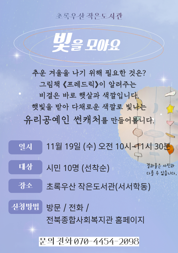 초록우산 작은도서관 | 성인프로그램 <빛을 모아요>