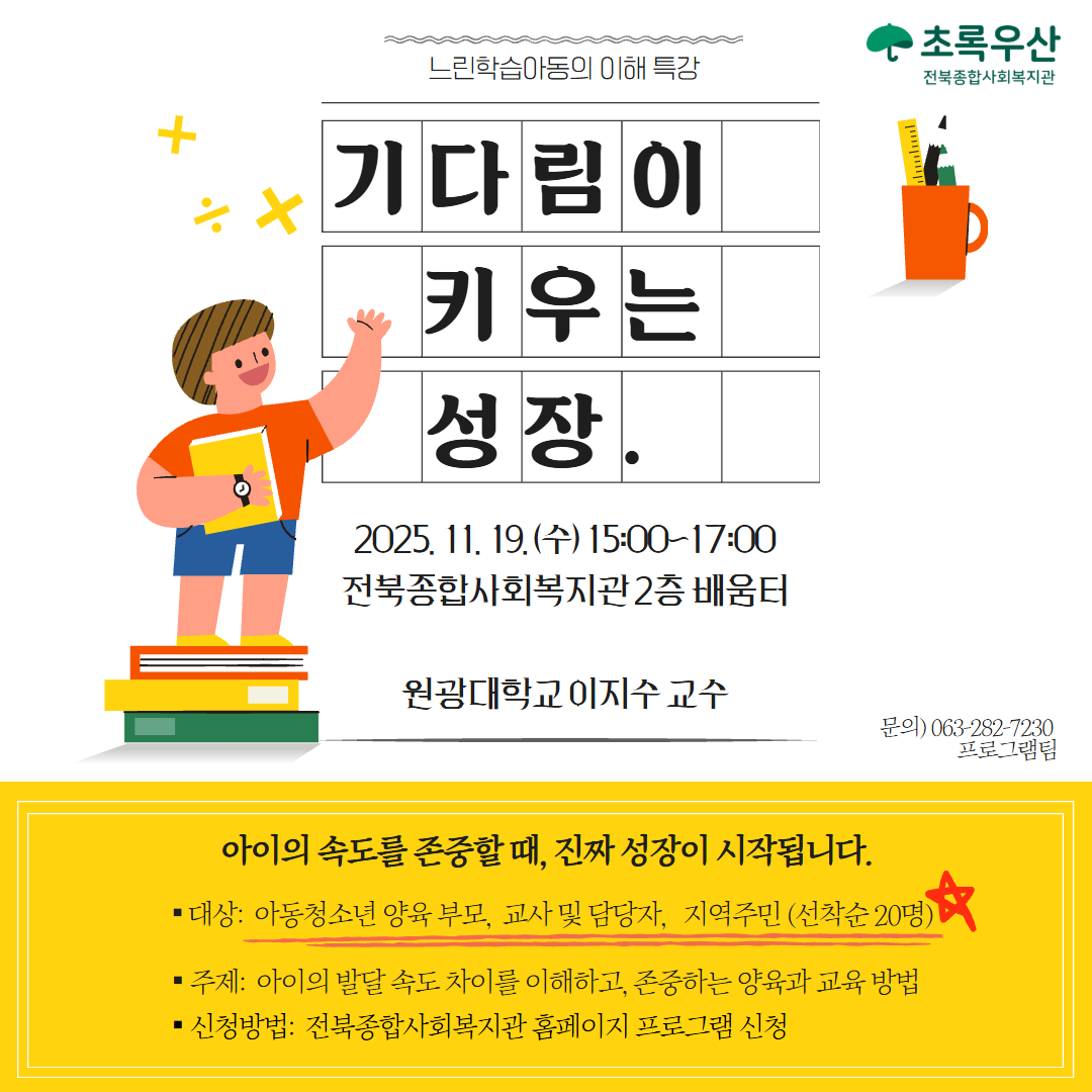 "기다림이 키우는 성장" 느린학습아동의 이해 특강 참여자 모집