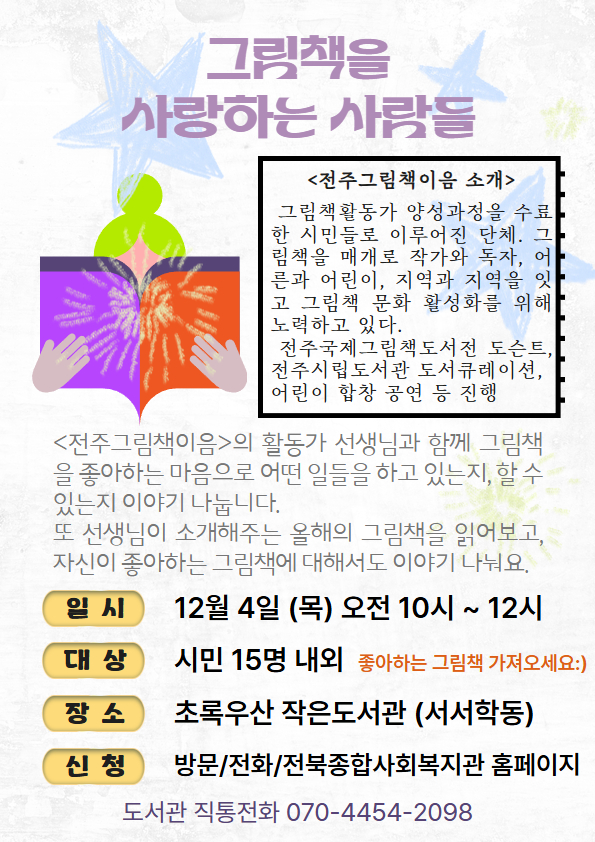 준비물 : 좋아하는 그림책 1권 가져오면 좋습니다.(선택)